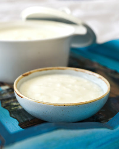 Kefir Curd is silky smooth and spoons like bean curd. It has that familiar fermented tartness associated with cultured yogurts. There is a subtle effervescent quality to the already complex flavour profile of Kefir.